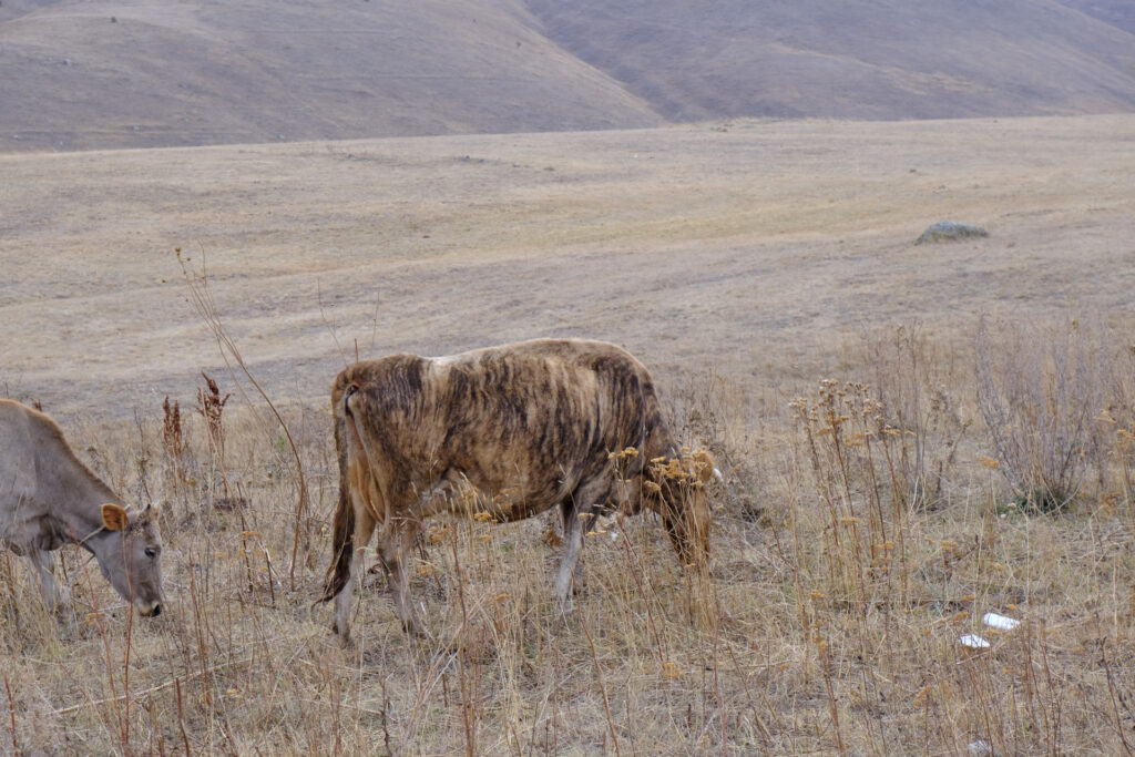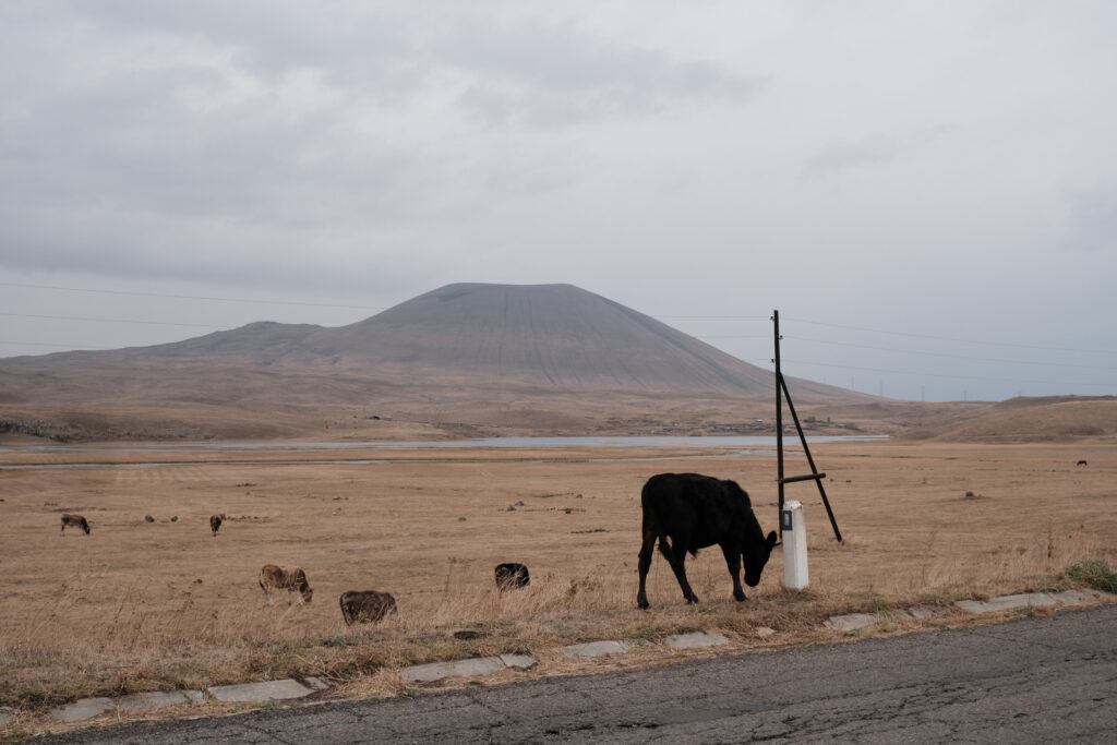 Mein Weg führte mich weiter durch dystopisch wirkende Gegenden, vorbei an „Tigerkühen“ und dem erloschenen Vulkan Argmaghan, bis hinunter zur am Sewansee gelegenen Stadt Martuni. Doch je näher ich dem See kam, desto kälter wurde es. Aus angenehmen 15 °C wurden innerhalb kurzer Zeit 10 °C, die sich aber deutlich kälter anfühlten.