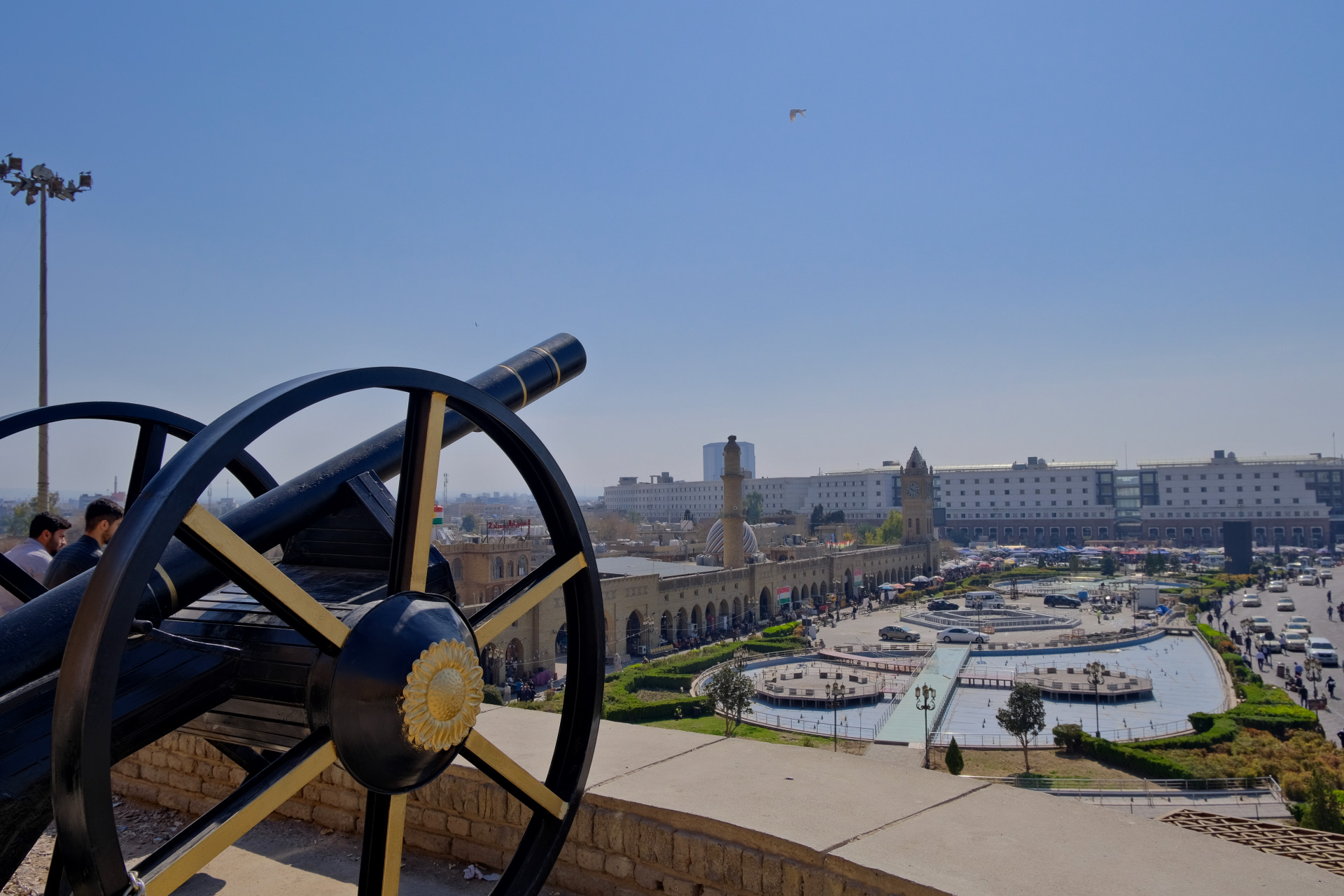 Nachdem ich gestern Nachmittag eingecheckt hatte, machte ich noch eine Spritztour mit dem unbeladenen Rad durch die Stadt, um mich ein wenig umzuschauen. Nach kurzer Zeit kam ich auch schon an der Burg Erbil an, die ich mir gerne angeschaut hätte. Ich hielt es jedoch für eine dumme Idee, mein Rad irgendwo abzustellen. Darum entschied ich mich dazu, am nächsten Morgen nochmal zu Fuß vorbeizuschauen.