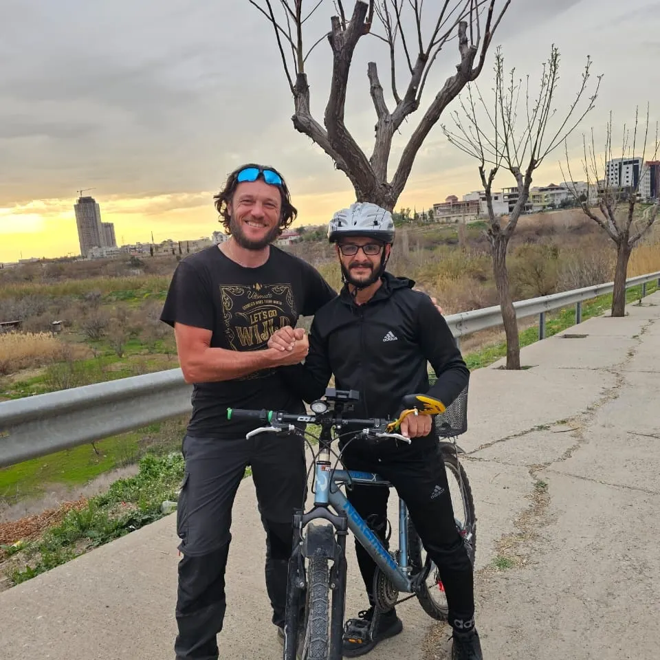 Zwischenzeitlich hatte sich Shad gemeldet und um drei machten wir zusammen eine Tour durch die Stadt. Der erste Halt war der Motorrad- und Radladen Bazhilan, wo ich ein paar tolle Gespräche mit den Mitarbeitern und dem Besitzer hatte und wir viel zu lachen hatten.